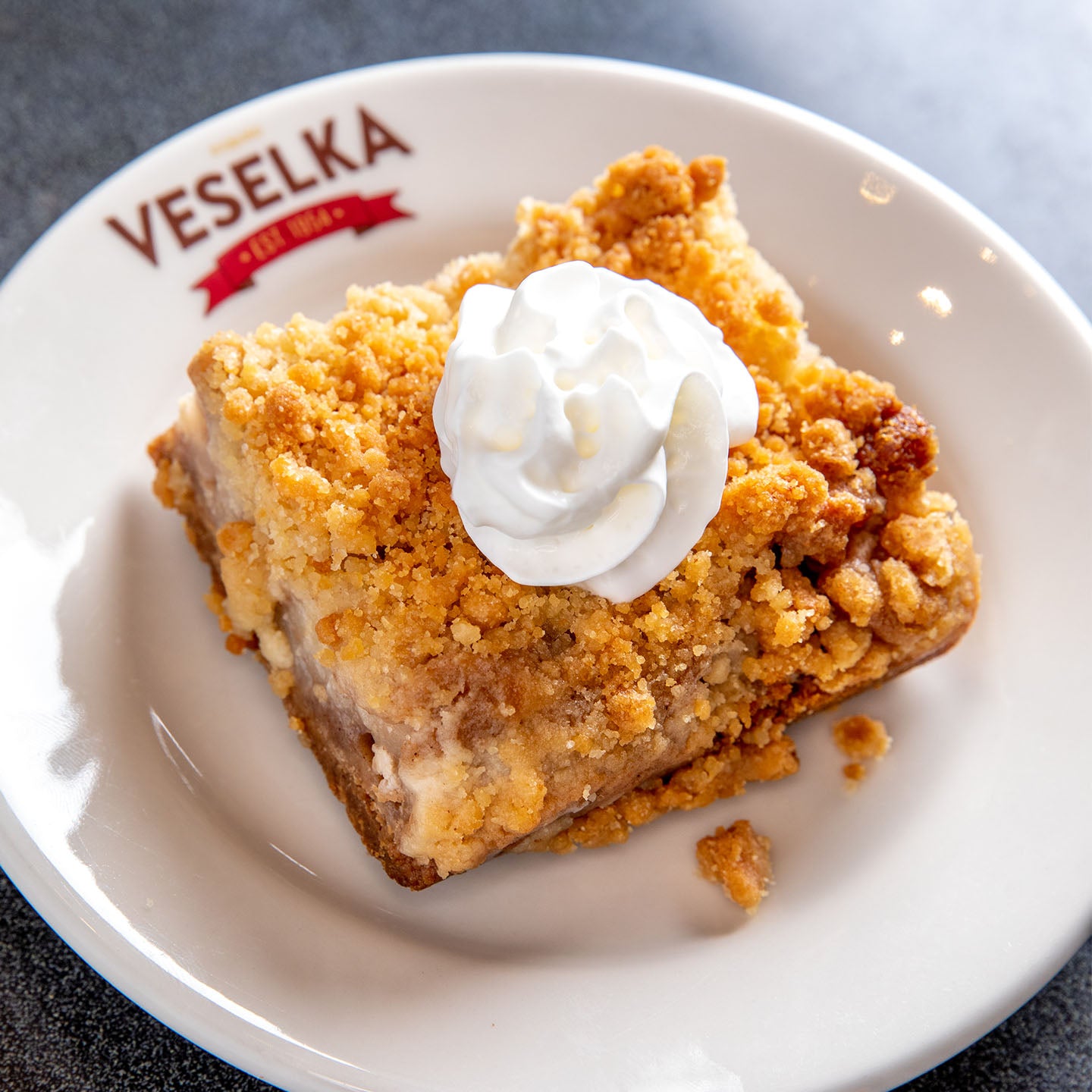 The most delectable, sweet apple crumb cake you can imagine. This is the sort of homey dessert that coffee (or vanilla ice cream!) always wants to be partnered with, is the perfect sweet treat to top off your event.